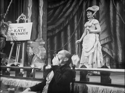 The act these two have come to see is not Mr Jack Daley, who just sort of walks about the stage a bit, but singing sensation Kate Seymour (Eira Heath - later a mainstay of the BBC's The Good Old Days, doing much the same act as here), to whom Jimmy Stratton has recently become engaged - much to his friend's horror.