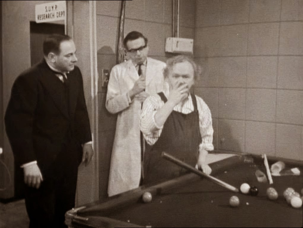 On his way to see the personnel manager, Charlie's grabbed by a man in a white coat (Mark Singleton, who was also in last week's episode), who implores him to play snooker. As a former schoolboy champ, Charlie's more than willing to do so. It's all part of an experiment on behalf of an aristocrat who wants to know how to play the game without smashing any fragile objects. The room in which they play is full of such objects, and Charlie manages to break all of them.